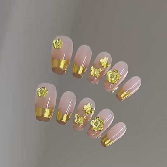 - Gold French Tips: Luxurious metallic gold foil on tips for glamorous finish