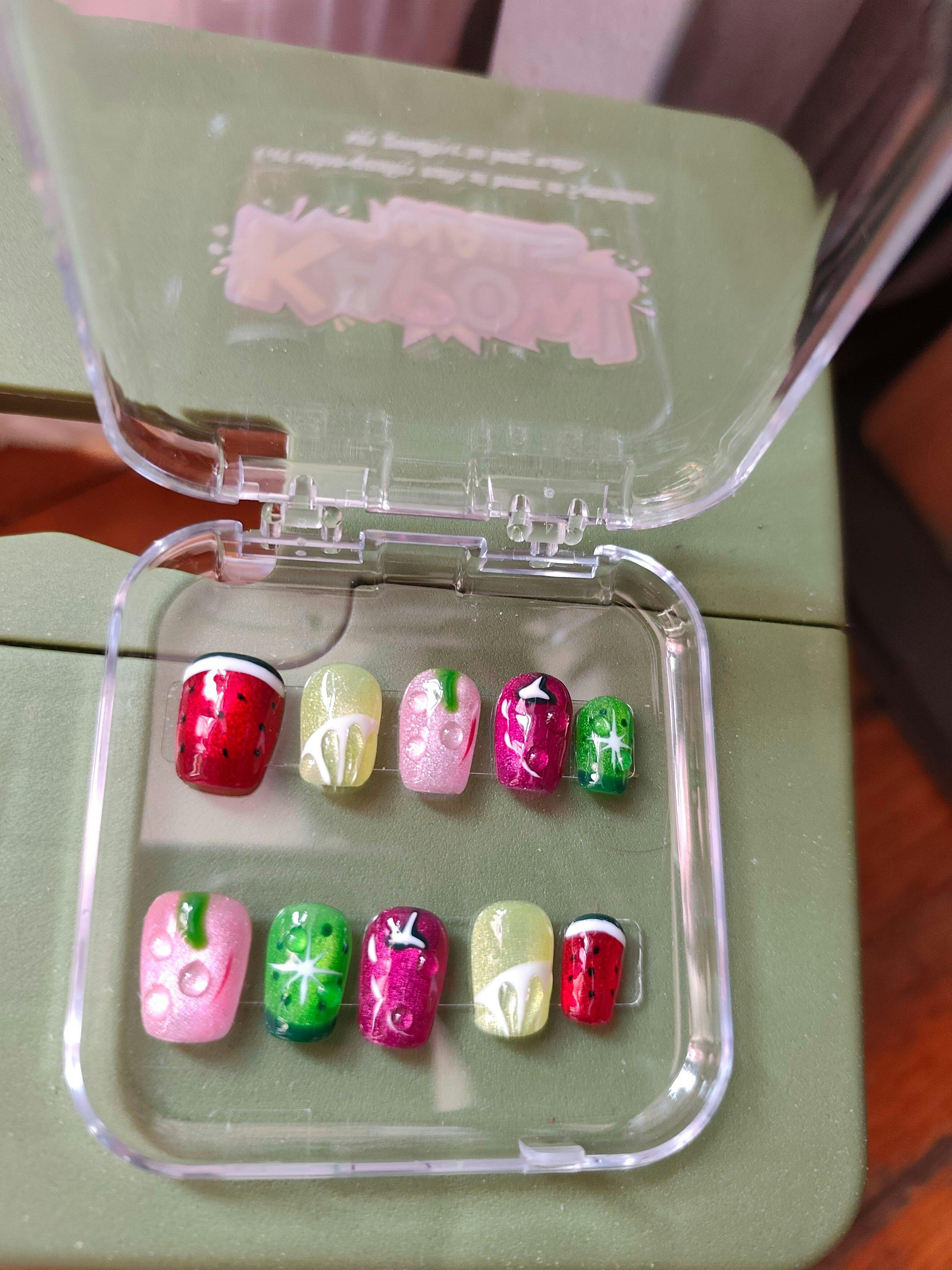 KAPOWNAILS Fruit - Themed Press - ons, Colorful Watermelon & Lemon Designs